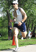 Arrived at Peterborough around 7:00 am; two hours before the race, which provide me with more than enough time to set up transition, registration, body marking, washroom, washroom again and all of the usual. I even had the chance to see the transition of few of the half ironman participants, considering my last T1 was 2:45 minutes; I was really interested to see how they managed to get out of the wetsuit and go in the bike in less than a minute. OK, enough to see, it was time for me to do my swimming warm up.