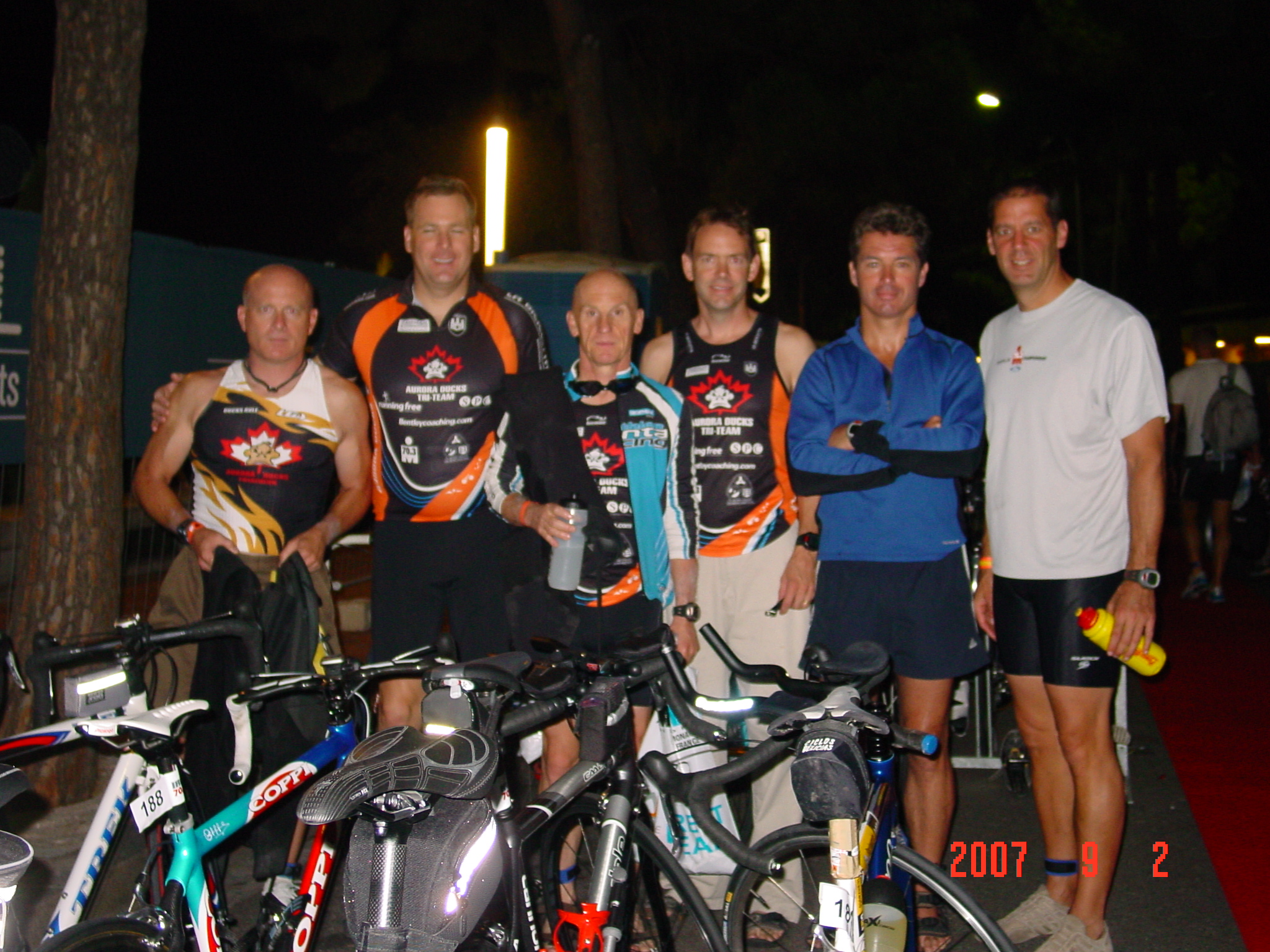 If you are seeking a challenging 70.3 Series course Monaco is it. Most of the challenge comes from the bike course which includes 1500m of ascent, the same as IMC.Last year, one of our group from the Aurora Ducks Master Swim/Triathlon Team (with Running Free as one of our sponsors) decided this would be a good race to do. So Brian, Spencer, David, Mike, John, Robbie and two ex members who now live in Europe, Mark and Greg together with myself decided to sign up. We also brought our fan club, Kelly, Simone, Cathy, Mary Beth, Elizabeth, Grace and Lois to cheer us on. The course was all it was made up to be and more. Monaco is a Principality located on the French Riviera about 11 km from Italy. It is 4 km long and 800m deep, hence most of the ride course was in France. It is built vertically with unbelievable switchbacks for cars and bikes and stairs and elevators for walking.We all assembled in Monaco (actually our hotel was in France about one block from Monaco) on the Thursday before the race and spent the next three days getting acclimatizing, swimming in the Mediterranean Sea. The day before the race Saturday we had the opportunity to drive the bike course. We were totally intimidated; 90k , 1500m of vertical. three major climbs and no real down hills you could take advantage of!