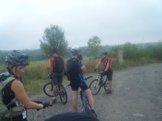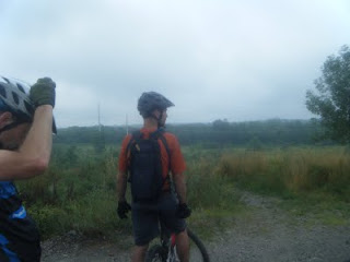 Then as we have barely begun the climb of Ben Trash….. thunder and rain. The full drench. And of course the wait for the made the wrong turn on the climb crowd. All the while listening to Tim whine about his tires having nothing for tread. That’s what happens when you become a weight weenie apparentely.