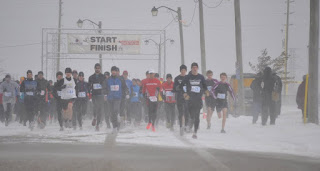 Going into this race, I had hope of breaking 30 minutes for the 8K if conditions were good. Well, race morning arrived and conditions were far from good. I solid dumping of snow, cold conditions and a stiff wind out of the north put all hopes of going sub 30 out the window.