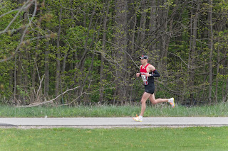 I crossed the line in 43:21, 3rd place overall and 1st place in the Wilmot Township division. Last year my time was 41:39, so about a minute and a half slower. I believe this is partly due to less speed work and partly due to the colder and windier conditions.
