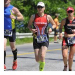 On to the run. So here is where my lack of training (one thing and another conspired to interrupt my training, including the broken toe and the sore knee) really showed itself. My legs had nothing in them coming off the bike. I also felt like I hadn’t taken in enough calories, so I had a gel and hoped my legs might come back. They didn’t. Not even the nice cold Coca-cola they served on course helped. I walked up the hills, but I did run, albeit slowly, the flats and the downhills. The run ended up being quite hot and steamy even though there was a bit of shade. The race organizers had also added a special treat at the end—the run course now goes up to the top of the pedestrian village before turning for a long downhill to the finish. I understand it, it now passes quite a few restaurant patios that were filled, but it was just nasty. Oh well, the spectator support is truly amazing here.