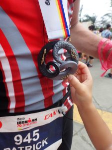 This was, hands down, the toughest leg for me. It was a two loop stretch to the end of the island and back. My transitions from bike to run aren’t great to begin with. When trying to get off the bike and run, everything from the bellybutton down decided to tighten up and resist. It was 35 degrees in the shade, when there was shade. No breeze. And 99% humidity in the air. After about 5 km in, I accepted the fact that my objective wasn’t going to be a specific time or even the finish line. My objective was simply to get to the next water station! And it wasn’t just the water and Gatorade I wanted, it was the scoop of cold water the volunteers would dump over your head that I needed. It was cold water, as they were keeping ice in it. And it was needed. As I was running along I’d go into a haze and just going through the motions. Then the scoop would come, and the clarity would return to your eyes. An awakening of sorts.