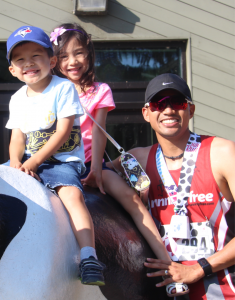 Once crossing the finish line participants received a very unique finishers prize, a cow bell. It will definitely standout on my wall. The post race refreshments was top notch having bagels, apples, bananas, water, milk and did I mention Kawartha Lakes ice cream! I enjoyed a orange pineapple scoop while my kids devoured a scoop of strawberry at 9 in the morning.
