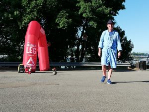 - – Team bathrobes are sooooo much better than team shirts. (Great at exchange points to stay warm and a beacon for the incoming runner to spot. Seeing your teammates as your turn the last corner, is such a boost! And… they are a great conversation starter with other teams.)