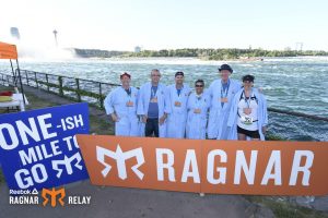 The race is a 36 leg relay from Cobourg to Niagara Falls. It is 300+ km in total distance, 36-ish hours, on roads, sidewalks or paths. There are age and gender divisions, along with a 12 person team option, or the Ultra category, which is a 6 person option.