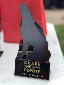 Chase the Coyote is a hometown race for me being from Orangeville and is put on by the best Running Free store and race directors ever!!! Jodi and Norm spend all year planning this event and every year it keeps getting better and better. I also volunteered to help tear down later in the day and had a hand in the awesome new trophies for the overall winners so I may have a bit of bias. The atmosphere at the race is incredible. All of the volunteers were fantastic cheer squads/motivators and supporters (Jamie Marcellus supported his friend Jeff who ran the 50 in the forest, and now the aide station should be sponsored by Saxx. Jodi see what you can do!). The Cow and the Unicorn (Sharon and Steph) at the top of Cardiac hill, cheering like a mad cow and unicorn would! Jaime and Victoria for the fill up on my bottle and checking in on how I was doing. And to ALL the other team and non-team members at the start, aide stations, paparazzi’s and finish line, hats of to you all. Jodi and Norm you are amazing supporters of all who run and your dedication to the sport shows at such a well run event. Can’t wait for next year. Cheers!