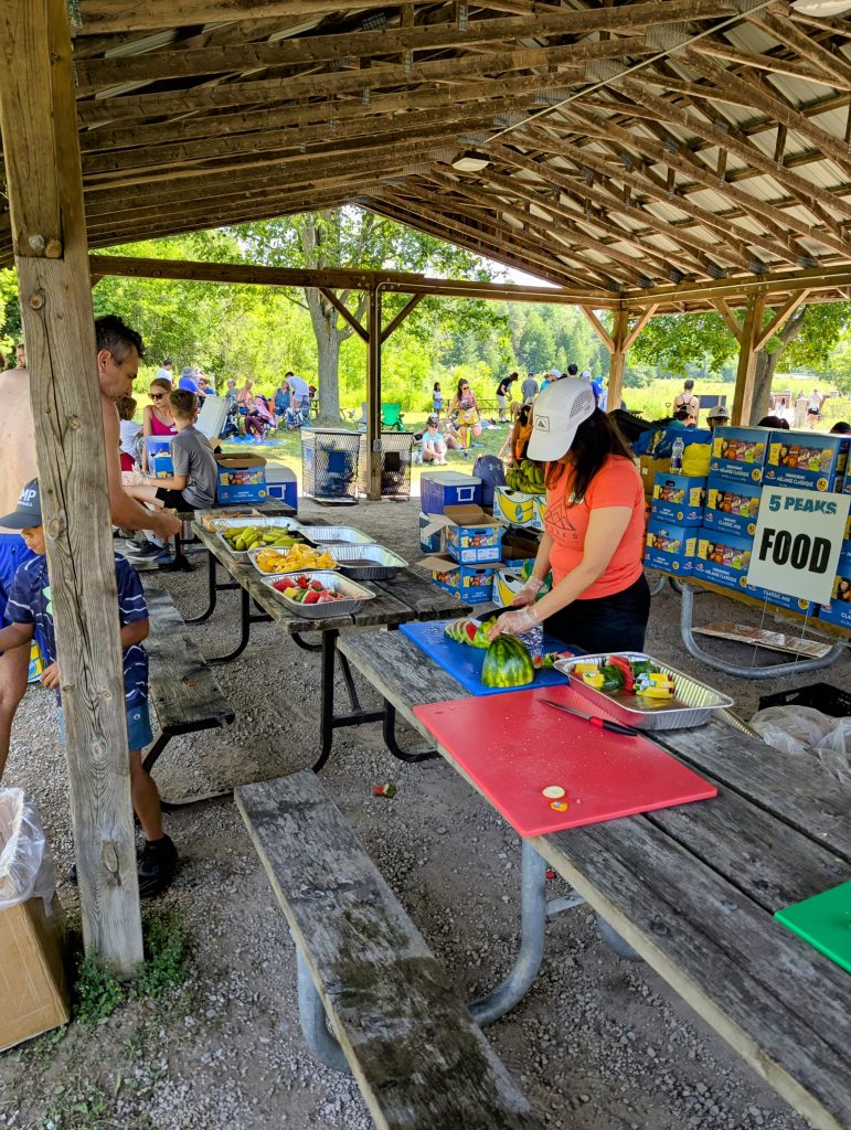 Post-race: Immediately after the finish line, you pass the aid station and can get topped up with water, electrolytes and fruit. Once you catch your breath, you can further make your way to the covered pavilion, for additional fruit, plus salty and sweet snacks to help you power back up.