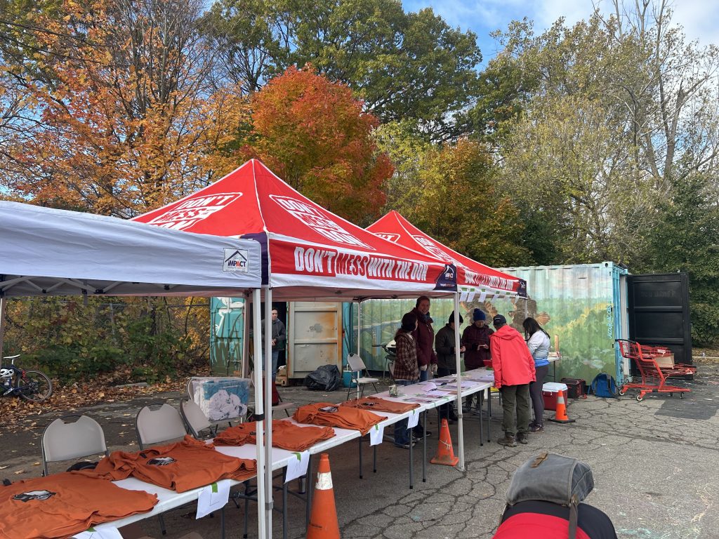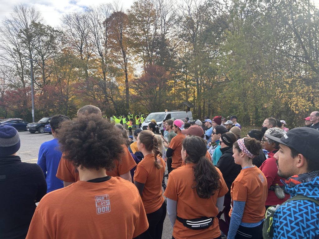 The race is on November 1st at 10 a.m. and starts at the container hub at the Loblaws trailhead at 11 Redway Rd. Similar to other regular Toronto Trail Runners weekly runs or events, runners gathered earlier to socialize at 9:30 a.m. They also came early to pick up the race shirt, which costs $25, and all the proceeds are going to support the DMWTD charity.