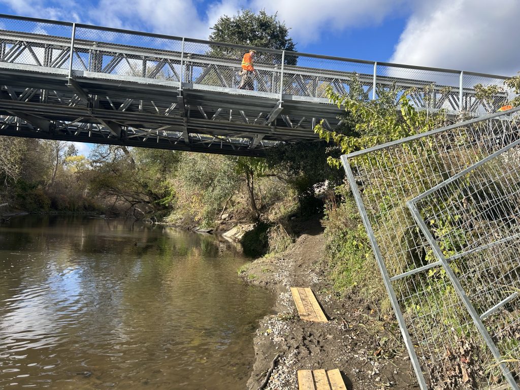 As the Metrolinx construction is underway near the trail, some construction materials and metal fences are placed along the course to detour or block some of the trail.