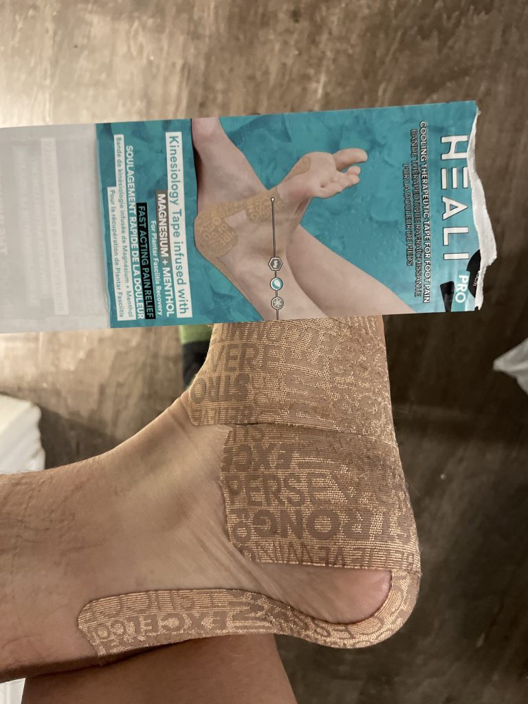 The tape seems to offer real support to the arch/heel area. On the brand’s website, Heali says it’s infused with magnesium and menthol, which help with inflammation reduction and pain relief.  The sensation isn’t just about compression — it actually feels like your foot gets a bit of “unlocking,” or relief from pressure when you walk. That makes a difference on those mornings when heel pain from plantar fasciitis would normally make the first few steps almost unbearable.